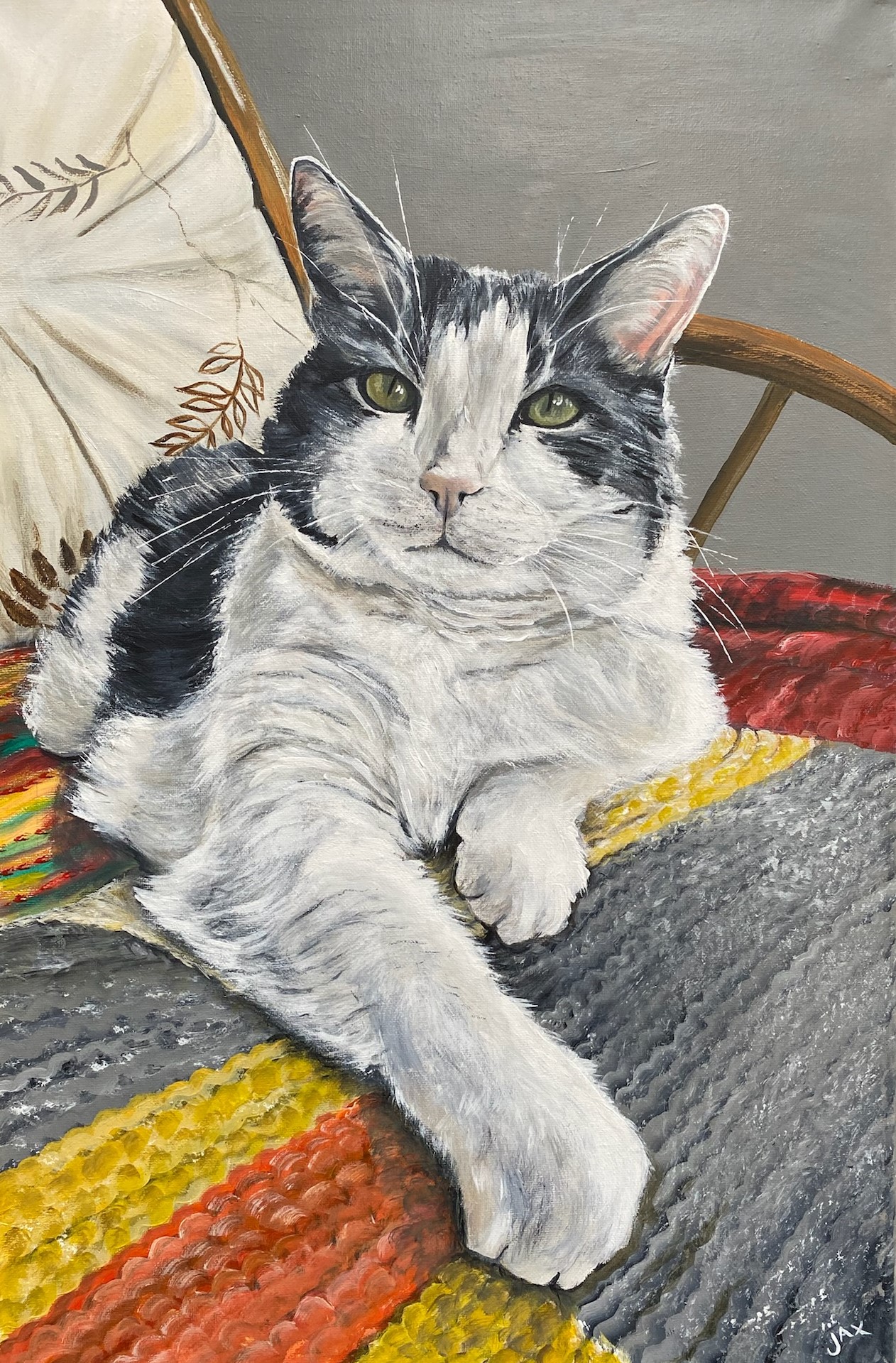 I specialize in a variety of subjects, including landscapes, seascapes, flowers, abstract pieces, and of course, pets! Whether it’s a calming coastal scene, a loose abstract, or a playful pet portrait, I love making art that connects with people and helps tie a room together. I’m especially passionate about using colour and texture to complement different interior styles and bring warmth and personality to a space.